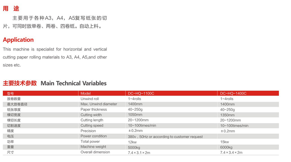 DC-HO-1100/14000伺服控制高速A4紙橫切機(jī)
