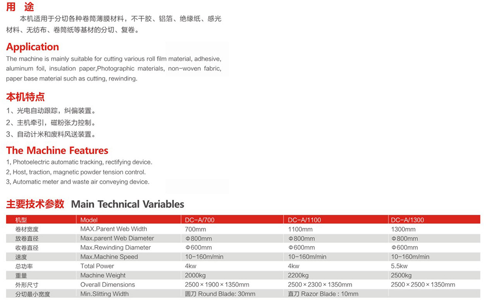 DC-A type center surface take-up slitting machine